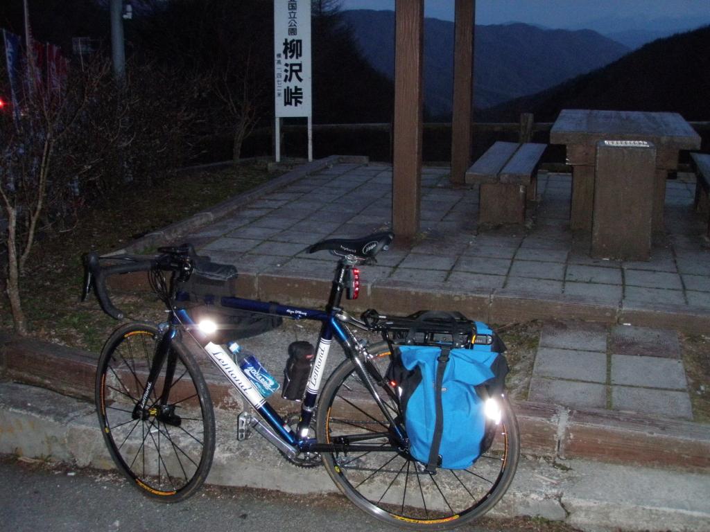 奥多摩まで普通に青梅街道で行くと、奥多摩湖までのトンネル郡が憂鬱だ。相模湖から鶴峠を経て小菅村へ抜ける事にした。車通りは少ないが、アップダウンは結構大目。さらに小菅村から丹波山へショートカットする今川峠の登りは思ったより斜度が厳しかった。 かなりヘロヘロになりながらも、最後の柳沢峠まで高低差700mをゆっくりと登る。 夕暮れ時、車の往来も少なくなるが森の中は逆に騒がしい。途中何度も鹿と遭遇した。 柳沢峠に着いたのは完全に日没後。一休みしてから着込んで下るが寒いっ。震えながら、LEDの明かりを頼りに降りる。つい飛ばしたくなる立派な舗装の道だが暗い道は危険。段差に突っ込んでパンクした! うっそ~。こんな山の中で...。街灯のあるトンネル付近まで下りる間にも、山間から犬の遠吠えが聞こえる。人家は無いから野犬だろうか?急いでてチューブ交換して宿へ向った。 [ INDEX ] [ 初日 ] [ 二日目 ] [ 三日目 ] |