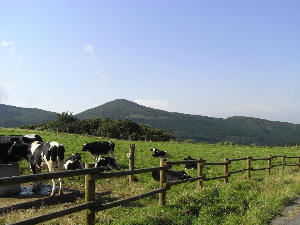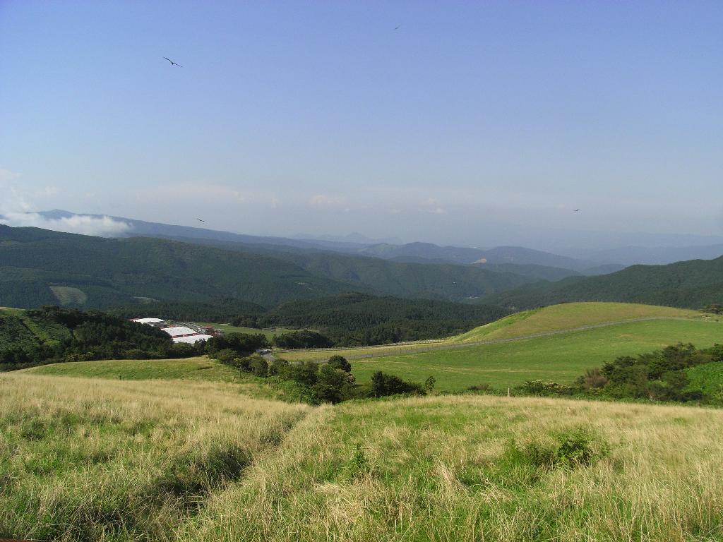 緩斜面に広大な牧草地が広がる。