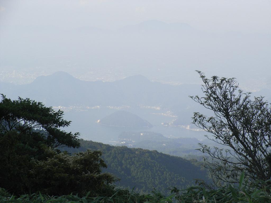 達磨山の尾根から沼津方面。淡島が見える。