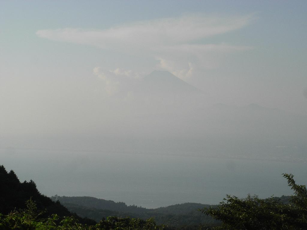 駿河湾の奥の遥か高所に、薄らと富士の影が拝めた。