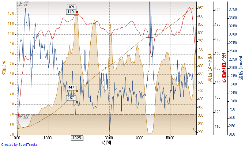 | 移動距離 | 31.06km | 平均速度 | 7.13km/h (12.78km/h ※2 ) |
