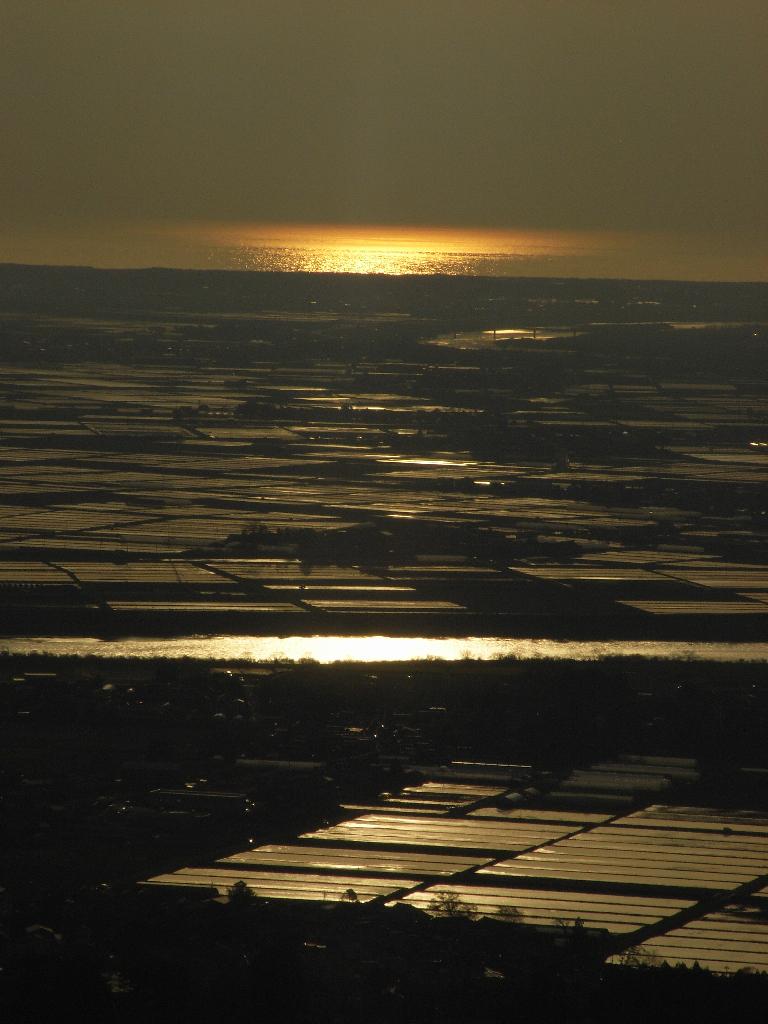 | コメント | 日本海と最上川と田んぼに夕日が照りかえす。 | |||