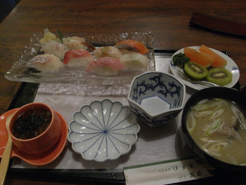 庄内浜にぎり、むきそば、どんがら汁のセット。 ミーハー観光客にはありがたい。 |