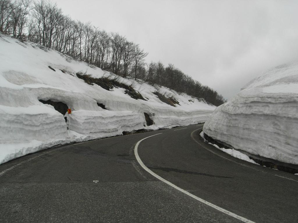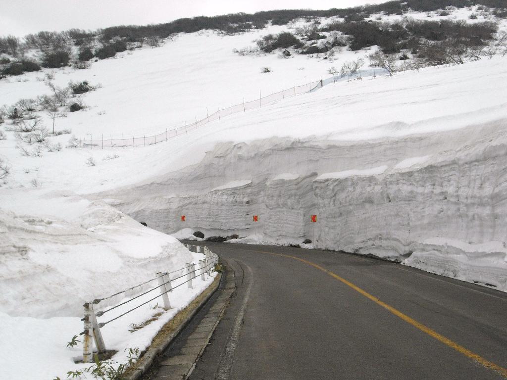 標高1000m近くになると雪の壁ができてくる。