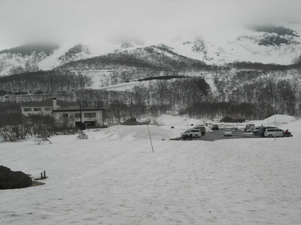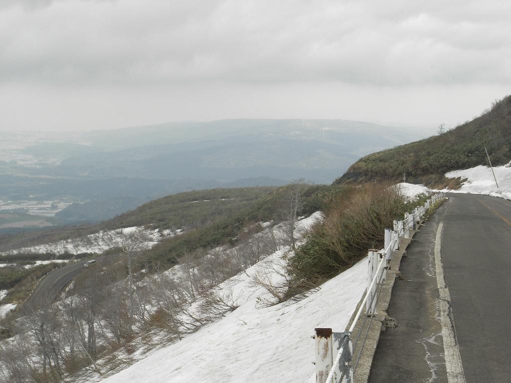 能代まで距離があるので男鹿半島と秋田はスルー。 鳥海山はどうするか?前日見た山体はとってもカッコよかった。 今日は、空には厚い雲で展望は期待できないかも。でも、登らなかったら後悔しそうなのでブルーラインを登ってみる。 海沿いから1000mあまりを一気に上がると銀世界だ。途中通過した裏磐梯に比べても標高は低いのだけど、さすがに日本海側の雪解けの春は遅いのだった。 鉾立展望台からは雲が切れて日本海が望めたし、北東の斜面に氷河のように刻まれた深い谷は一見の価値が有った。 厚く着こんでまた、一気に降りて滝見物なんぞしてると昼を過ぎてしまった。先はまだ長い。おけさおばこライン(R7)に出て単調な海岸線をひたすら北上する。 秋田港を過ぎ、男鹿半島の付け根にある八郎潟の干拓地を横断するうちに日が暮れてきた。 でっかい水田の向こうに沈む夕日を写そうとデジカメを構えたところで、カメラが手から逃げた。 「カッツーン!」 軽快な音を響かせてアスファルトにバウンドしたお気に入りのRICOH R6。筐体も割れて二度と電源が入ることは無かった。南無~。 真っ暗になった能代郊外を走り市街に近づいたところで、電器量販店を見つけた。 このままカメラ無しの旅は寂しい。ちょうど防水3mの丈夫そうなデジカメが安売りしていたので、お供してもらう事にした。 [ INDEX ] [ 初日 ] [ 2日目 ] [ 3日目 ] [ 4日目 ] [ 5日目 ] [ 6日目 ] [ 7日目 ] [ 8日目 ] [ 最終日 ] |