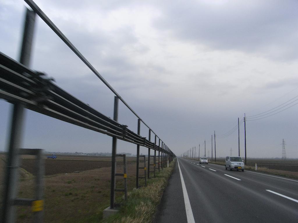 大潟の干拓地をまっすぐな道が走る。