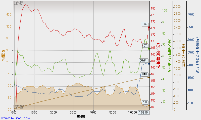 10%くらいの坂が続く